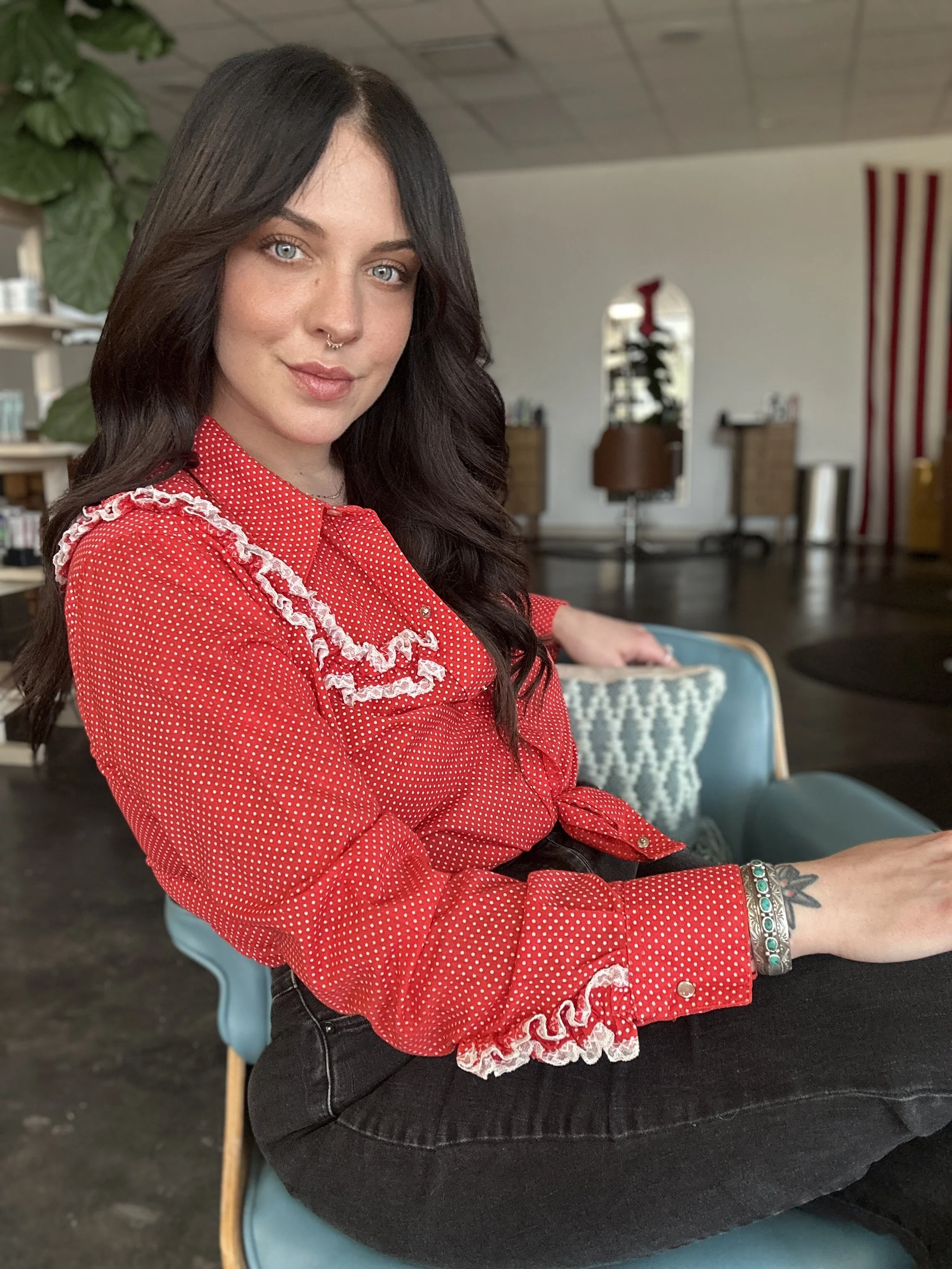 Sadie Rucker has been a hairstylist for 12 years. She specializes in straight razor cuts, fringe + shags, texture, blonding, and men’s grooming. Outside of hair, she has a passion for vintage clothing and thrifting. You can find her vintage boutique inside of American Honey!